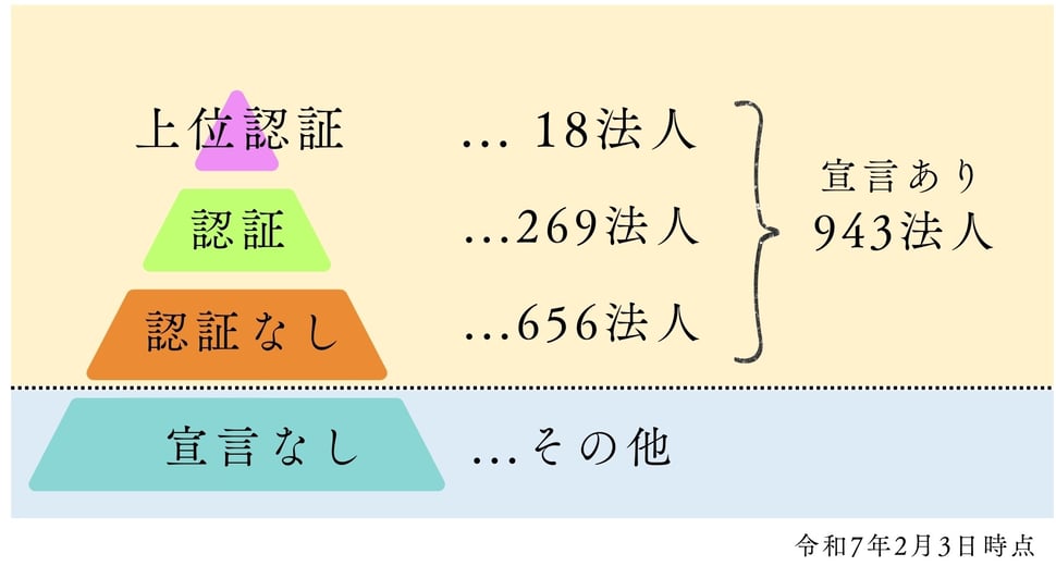 認証より更に厳しい基準をクリアしている『上位認証』法人が18法人。