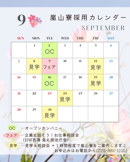 9月の採用イベントのお知らせです♪