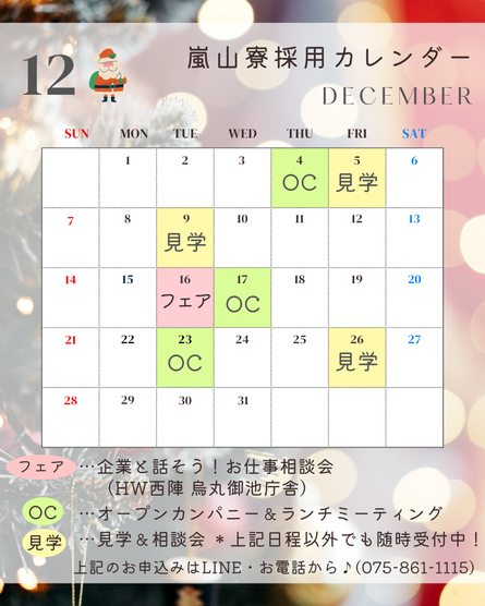 12月の採用イベントのお知らせです♪